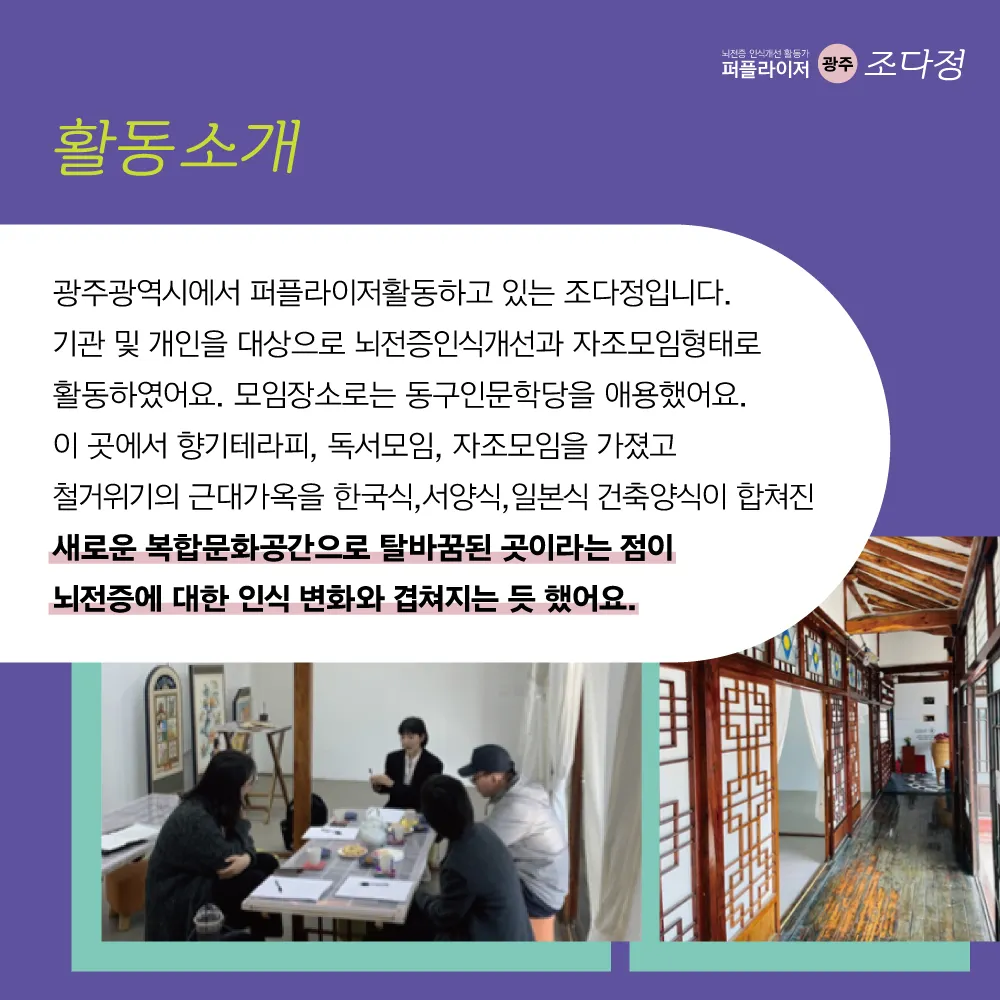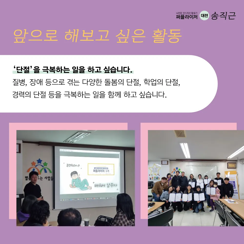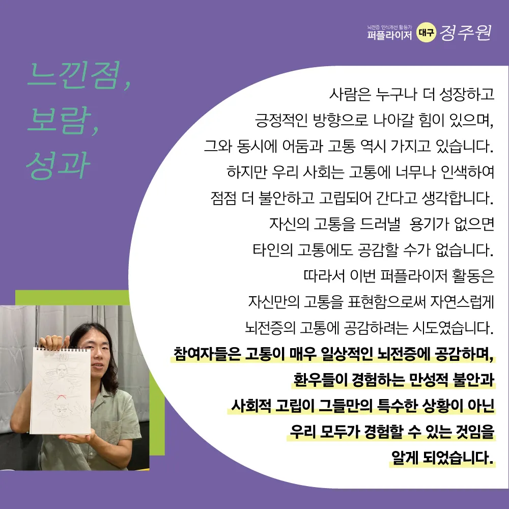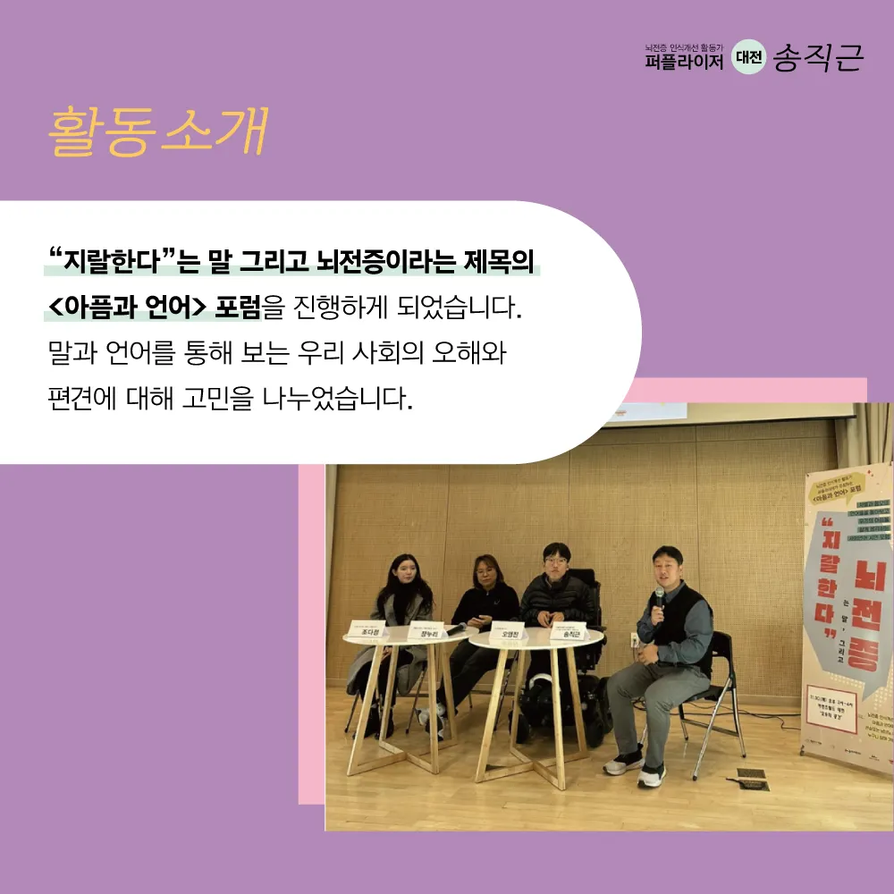 뇌전증 인식개선 활동가 '퍼플라이저'는 뇌전증에 대한 올바른 이해를 확산하고,